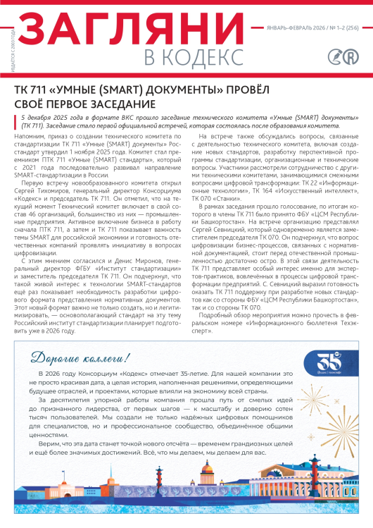 - материалы о первом заседании технического комитета по стандартизации ТК 711 "Умные (SMART) документы";
